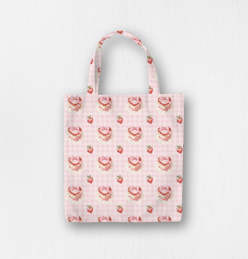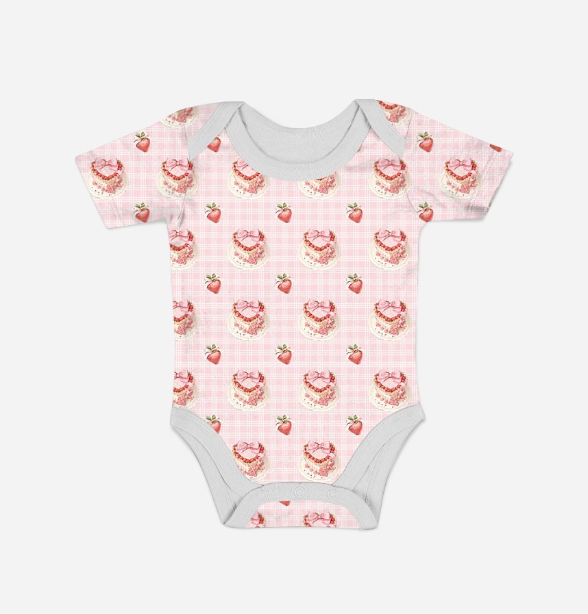 A gentle pink check and a strawberry and heart cake are the best of girly's