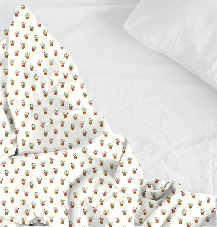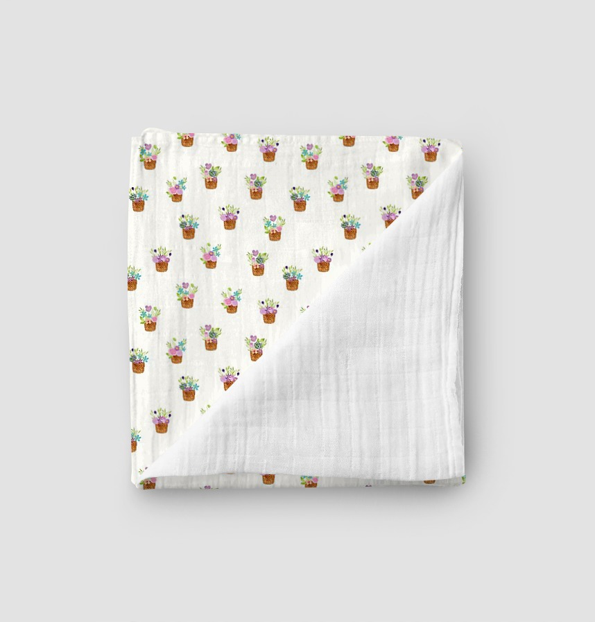 | Design infomation | It is a pattern of repeated arrangements of small flower baskets with various flowers and greens. A cute-sized motif is arranged with space to create a bright and lovely garden mood. |