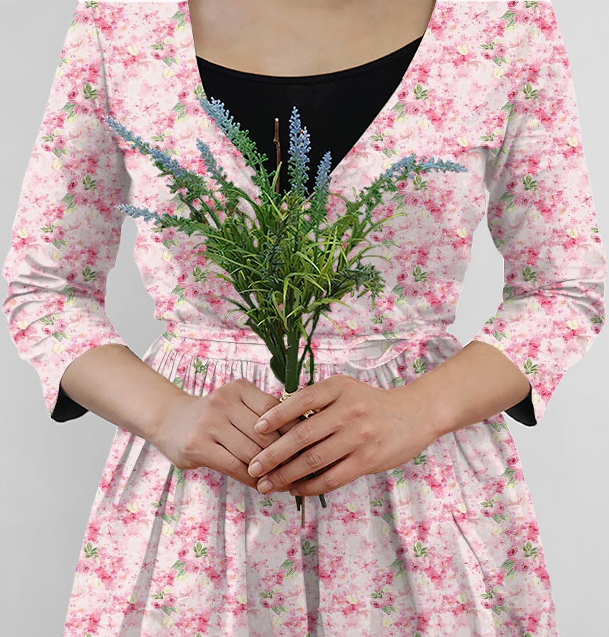 | Design infomation | This pattern creates a lovely and fantastic atmosphere by combining pink roses, flowers, and butterflies in a soft watercolor style. Flowers and butterflies densely arranged on a light background remind us of a colorful flower field and are filled with feminine and elegant sensibilities. It is a design that harmonizes the vitality and romanticity of nature. |