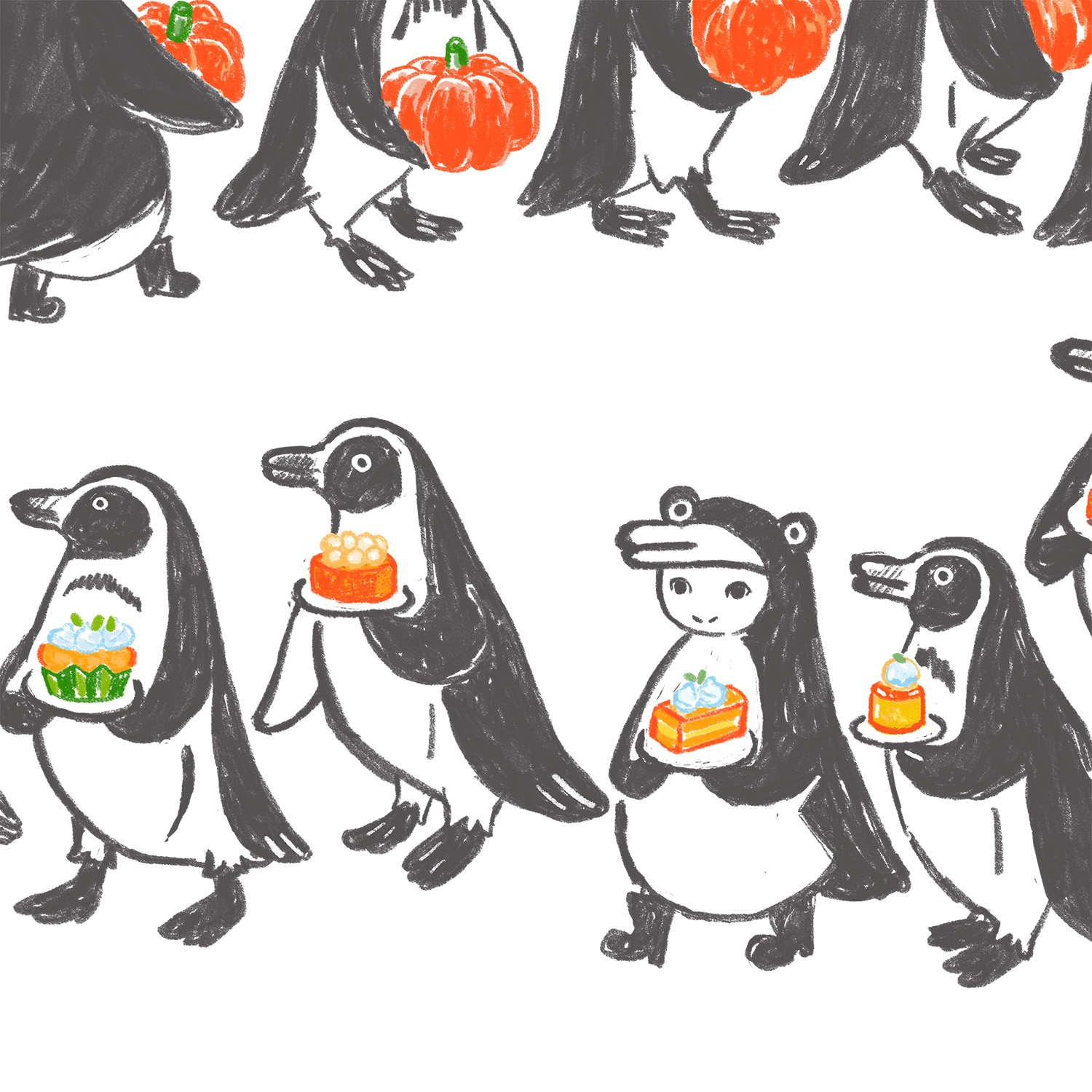 It is a pattern design with a bread motif drawn with a soft watercolor touch. Croissants, bread and