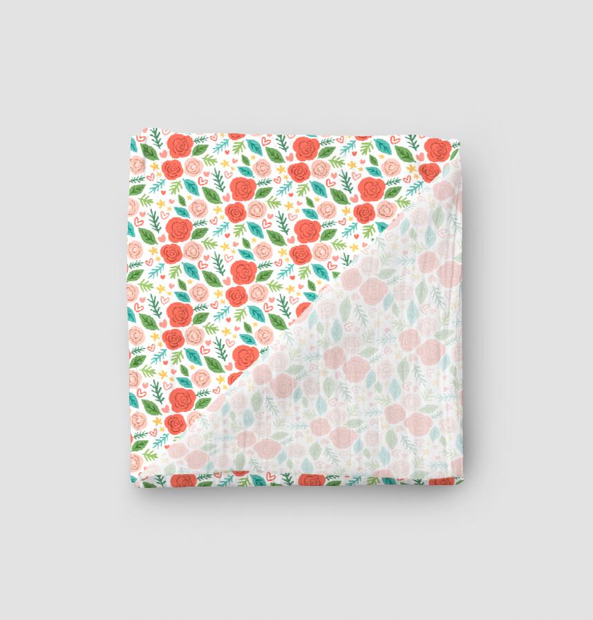 It's a cute design with heart and Ranunculus flower patterns.