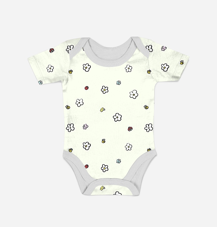 It is a seamless pattern design with cute flowers and insects.