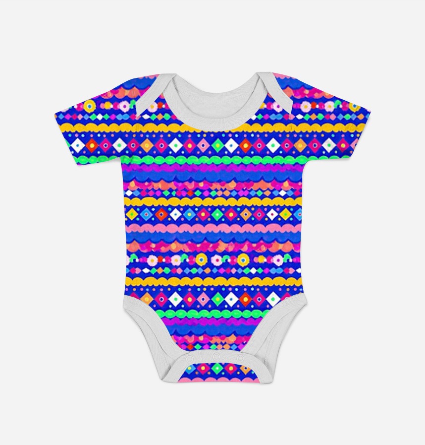 A combination of retro-pop color scheme and geometric x flower motifs |
