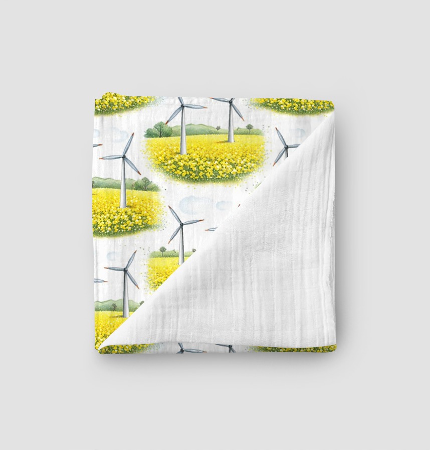 I have created a pattern of Jeju canola flowers and the Gashiri Wind Power Plant.