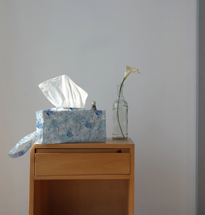 It is a pattern that expresses blue flowers and butterflies. The blue color creates a colorful but calming pattern. It goes well with many props. |