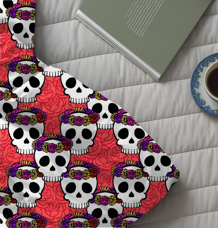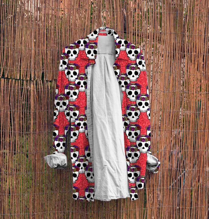 | Design name | [3541] Skull wearing a flower crown - coral pink |