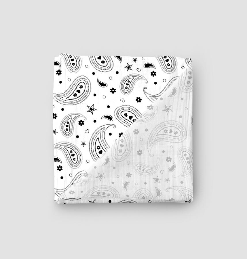 The design is a combination of Paisley patterns, hearts, and stars on a pure white background, creating a clean and emotional atmosphere.