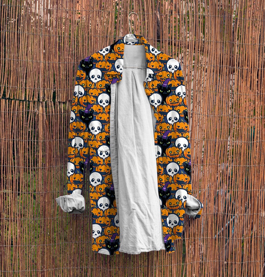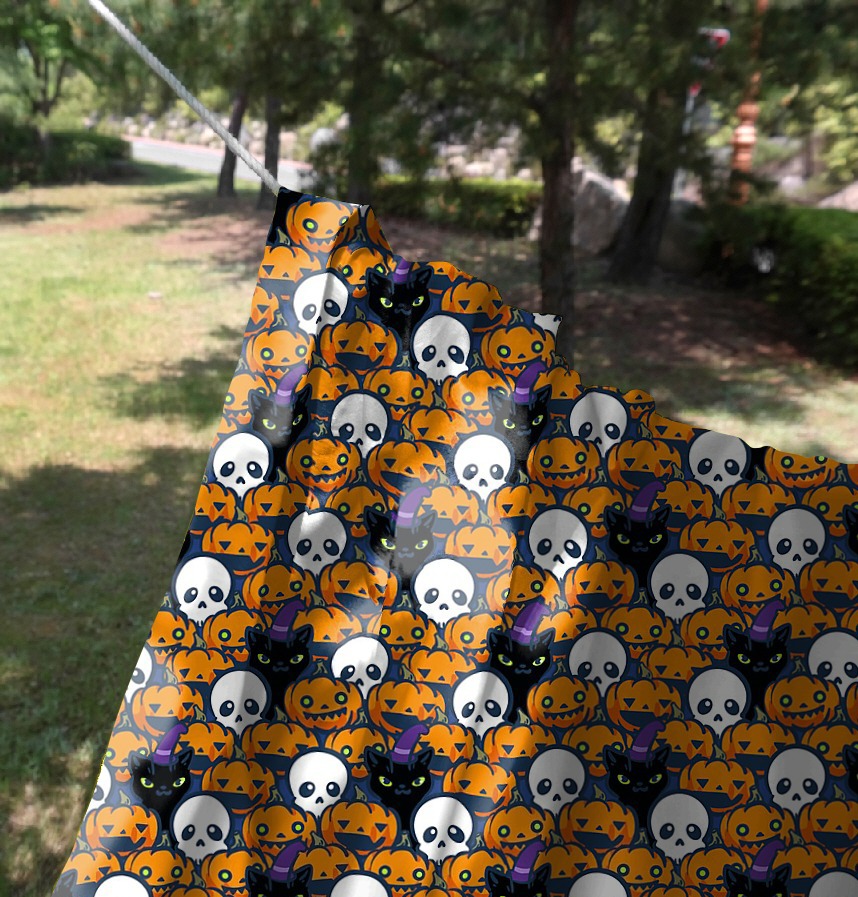 Design infomation A pattern in which a skull and a black cat are mixed in a pumpkin ghost.