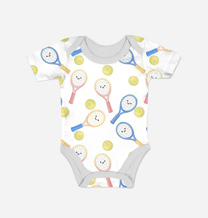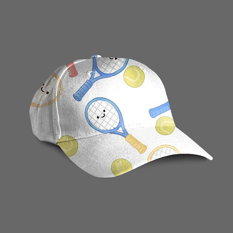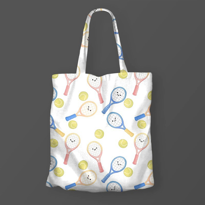 | Design infomation | An all-over pattern in which rackets and tennis balls are repeatedly placed at regular intervals. Each racket is oriented slightly differently so that the pattern is not monotonous, and balls and small decorative elements fill in between to form a natural and balanced repeating structure. It is good for use in various props and fabric designs with a soft and cute pattern design using pastel-toned colors. |