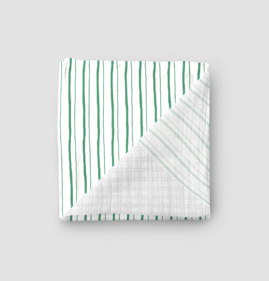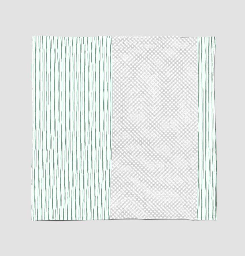 Simple, combination of light grey plaid and green stripe (Must buy a full yard to get two patterns) |