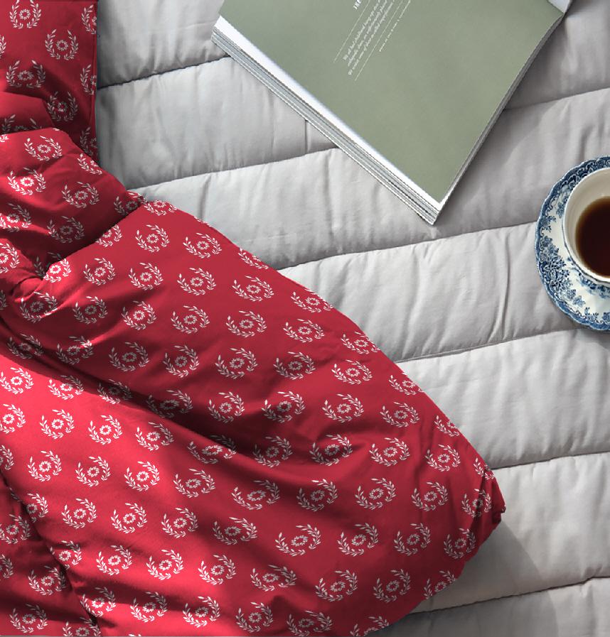 This pattern features a harmonious arrangement of simple white flowers and olive branches, with a deep red background adding warmth and sophistication to the overall design. It perfectly captures the beauty and elegance of nature.