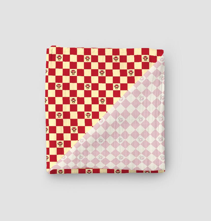 Checkered pattern with occasional mushrooms