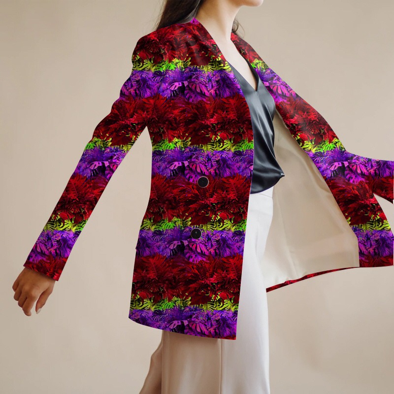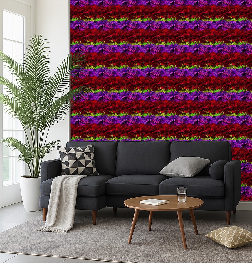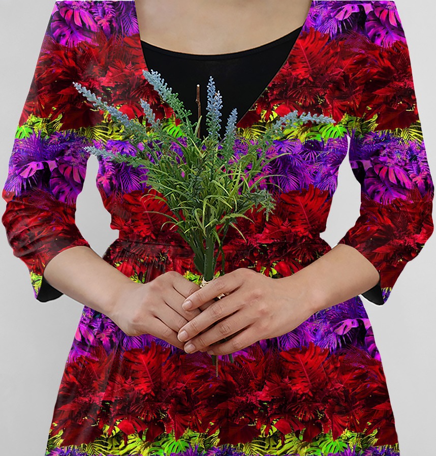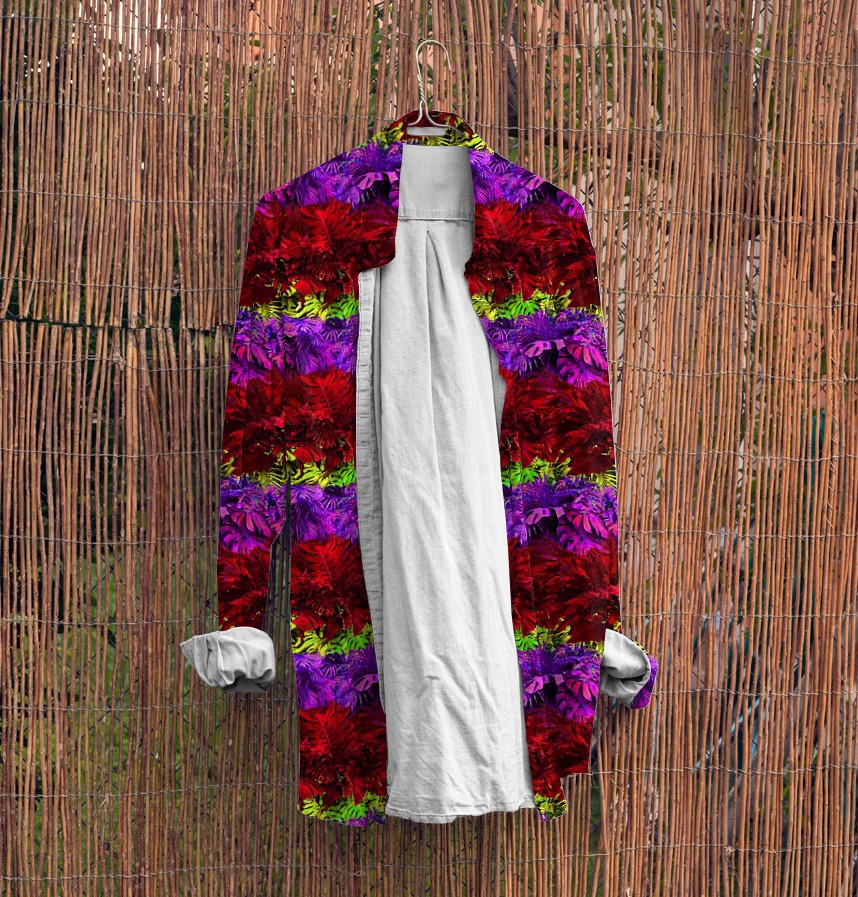 A tropical and artistic pattern featuring vibrantly colored tropical plants.