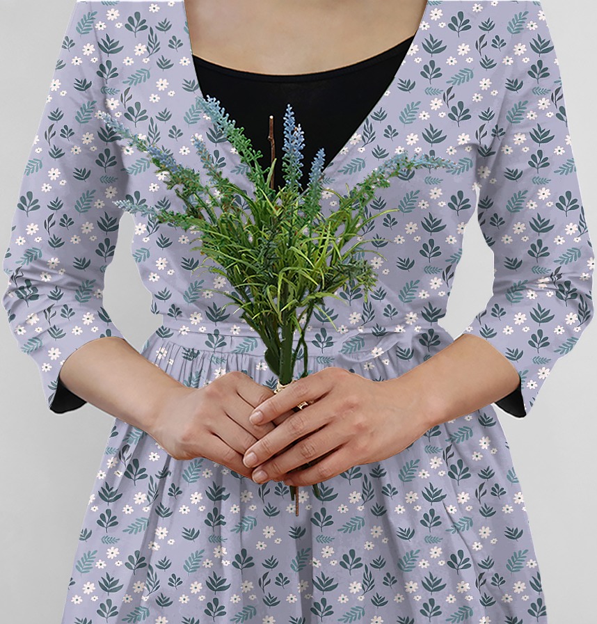 It is a simple spring flower and leaf pattern with a spring vibe and a lavender scent.