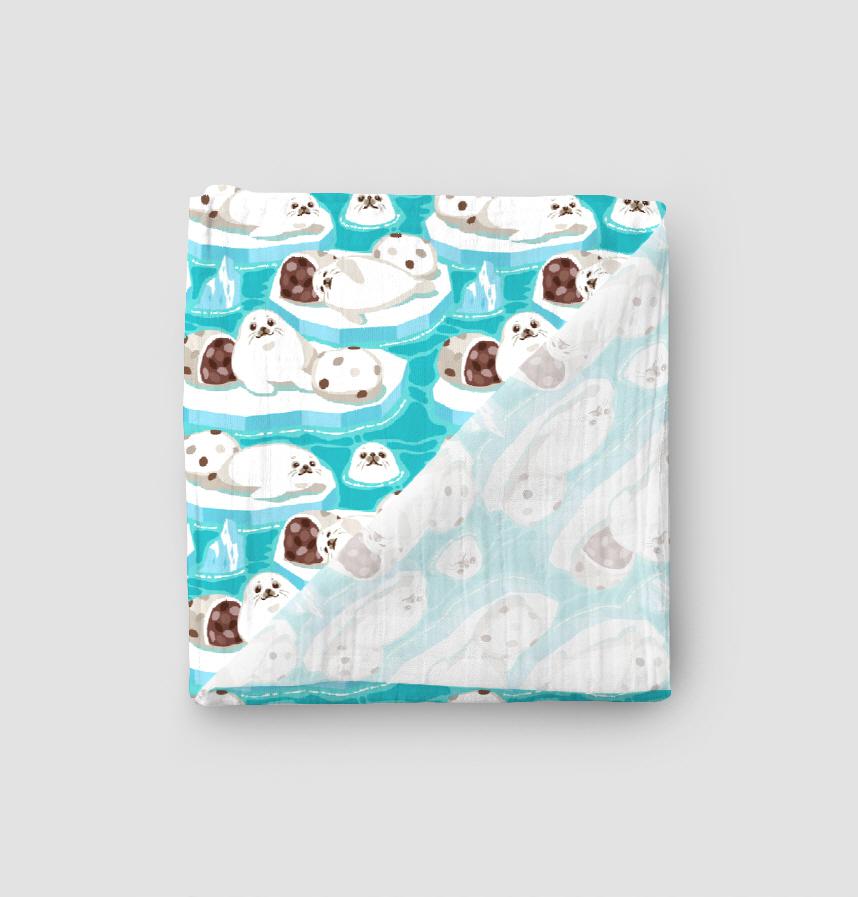 [43861] Earless seals and Daifuku (14×14cm) Emerald Green |
