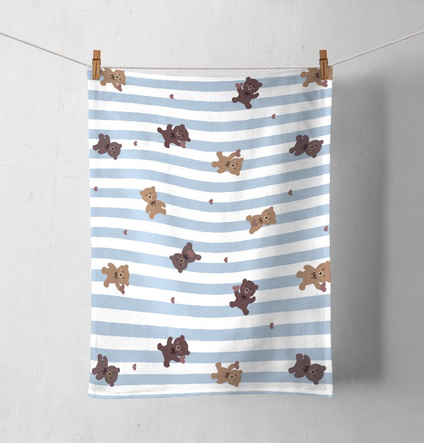 It has a blue stripe pattern and a cute baby bear pattern design.