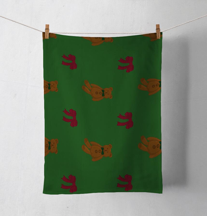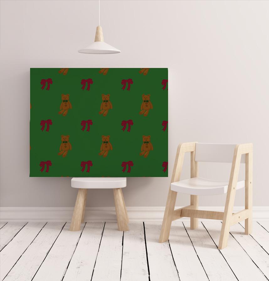 This is a pattern with a teddy bear and a ribbon.