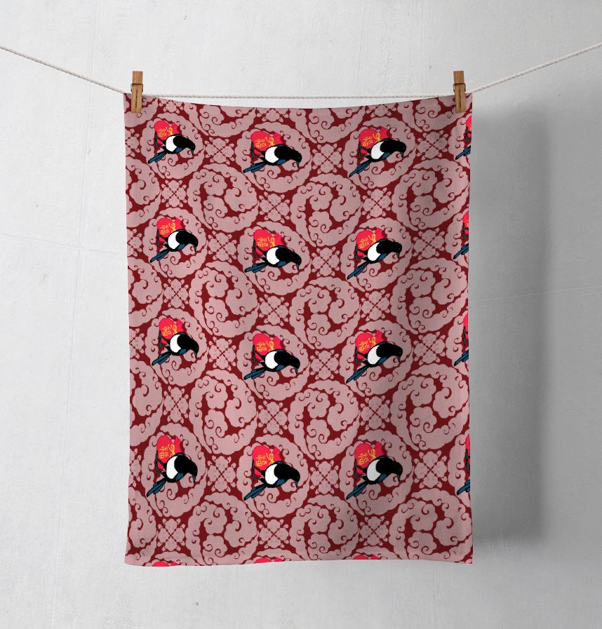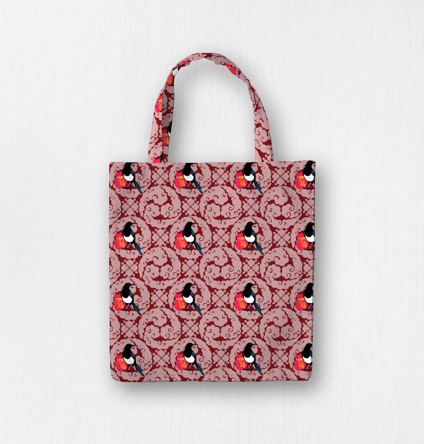 It is a design pattern with magpies and lucky bags as a motif.