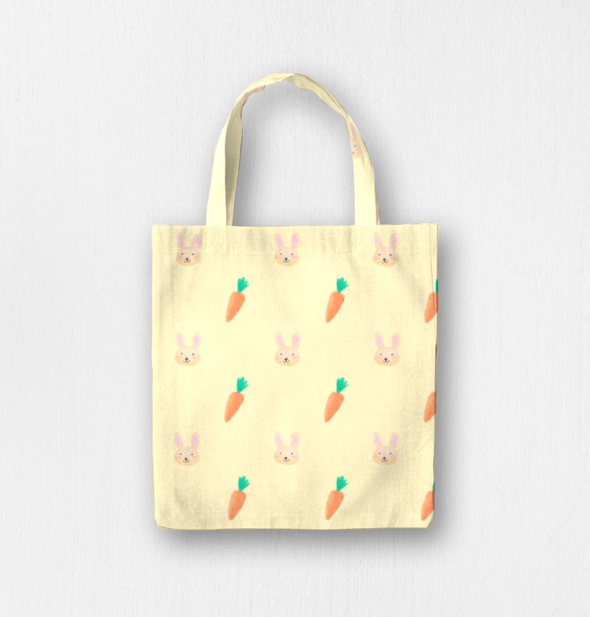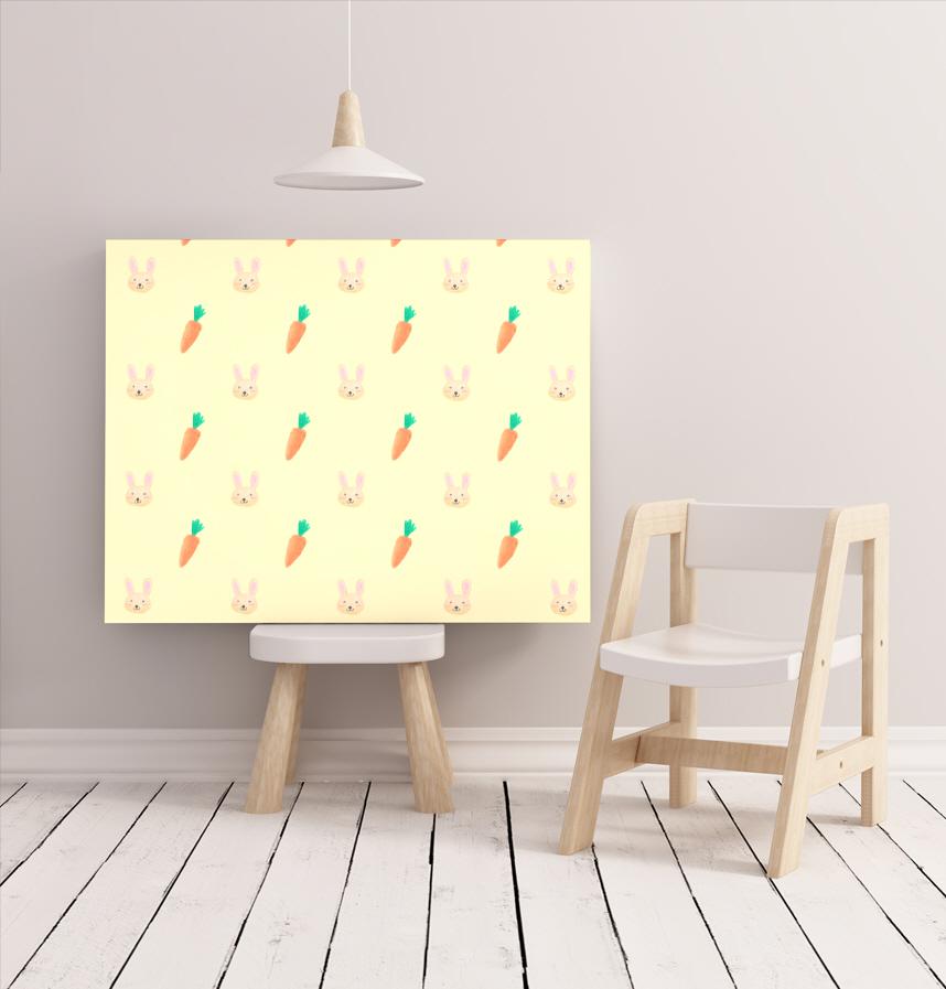 This is a pattern of carrots and rabbits drawn with colored pencils.