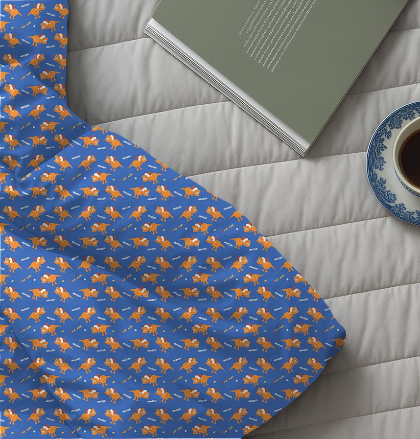 The cute design of Tyrannosaurus wearing a Santa hat will look great on children's blankets, clothes, and interior decorations!