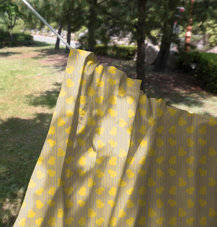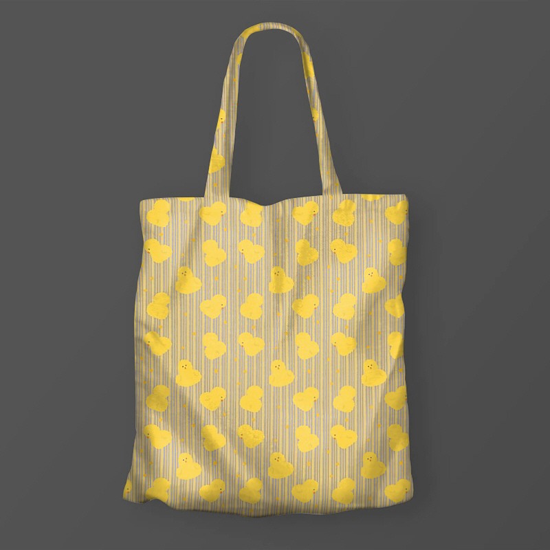 It is a yellow baby chick design that closely resembles the bright and warm image of spring.