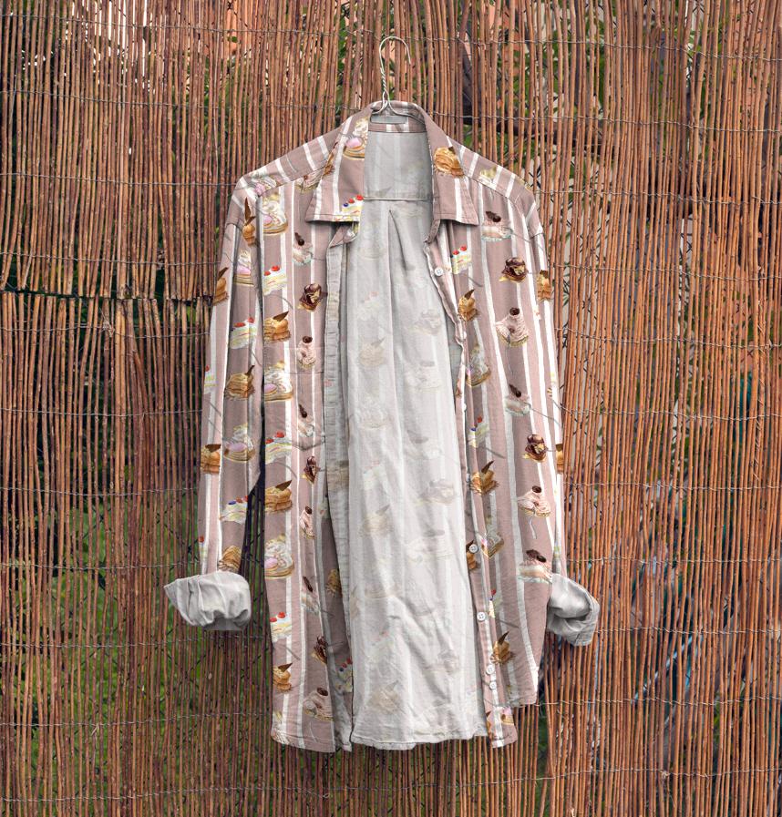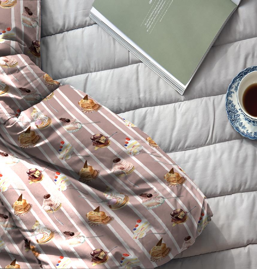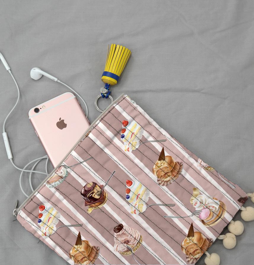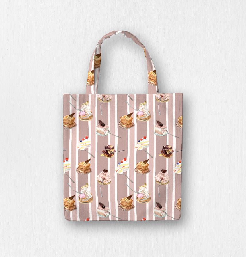 Design infomation Six types of cakes, including shortcake and Mont Blanc, were arranged on a striped background.