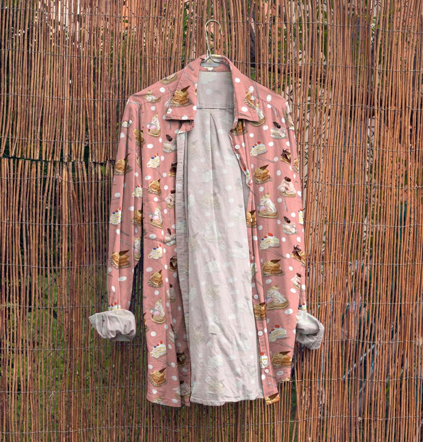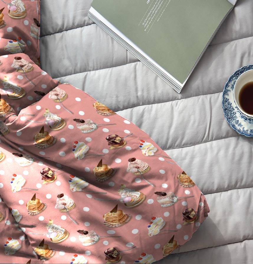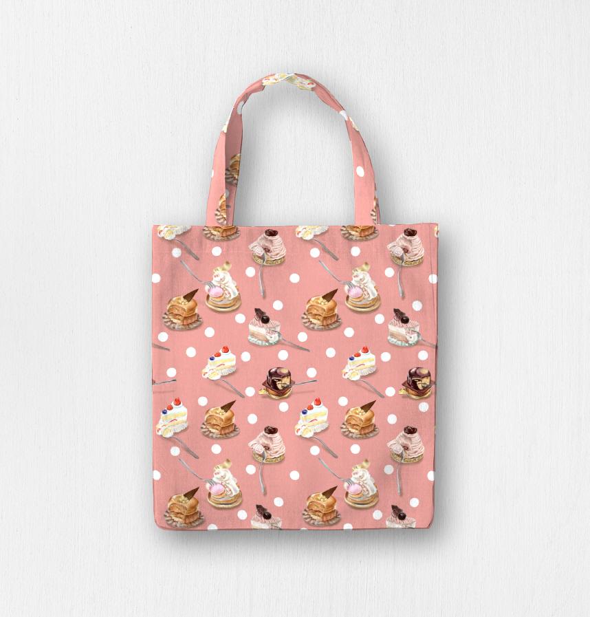 Design infomation Six types of cakes, including shortcake and Mont Blanc, were arranged on a dotted background.