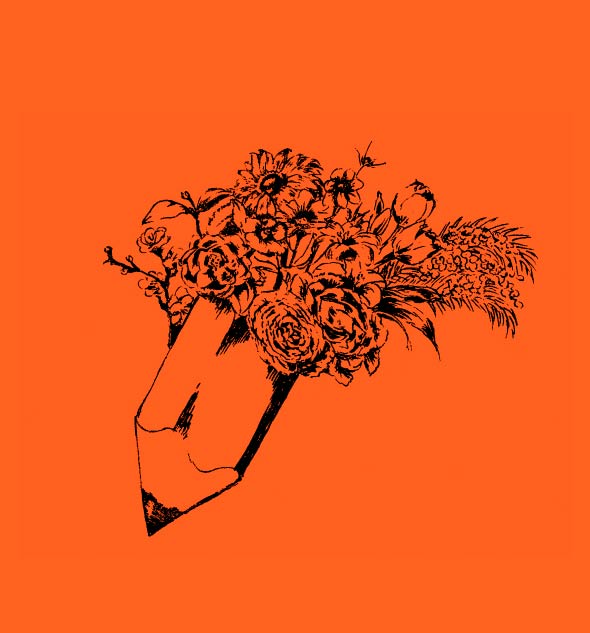 The warm touch of the colored pencils and the orange polka dots create a subtly cute look!