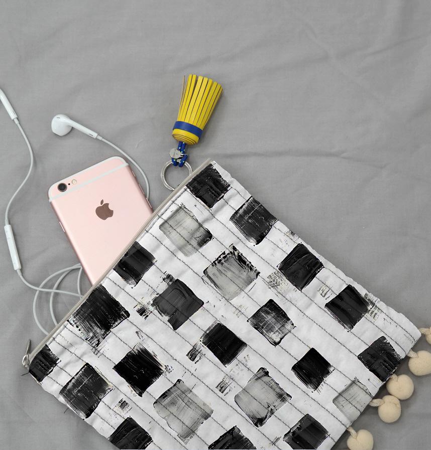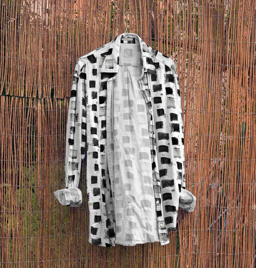 It is a simple design woven with oil-painted monochrome squares. |