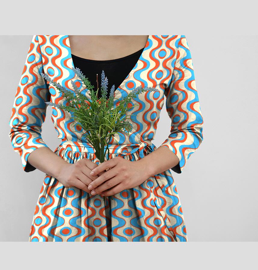 a psychedelic curved geometric pattern similar to that of old clothes of the 60s and 70s |