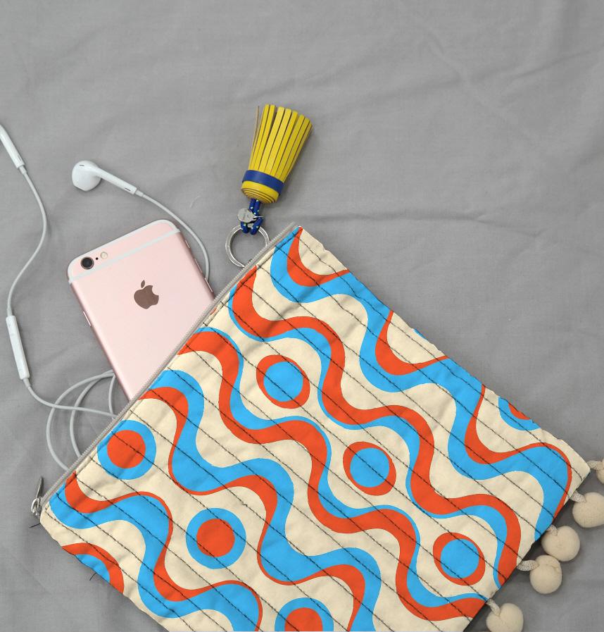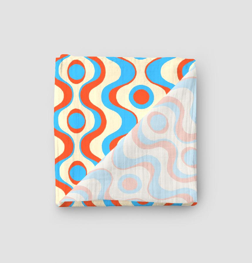Psychedelic curved geometric patterns reminiscent of vintage clothing from the 60s and 70s
