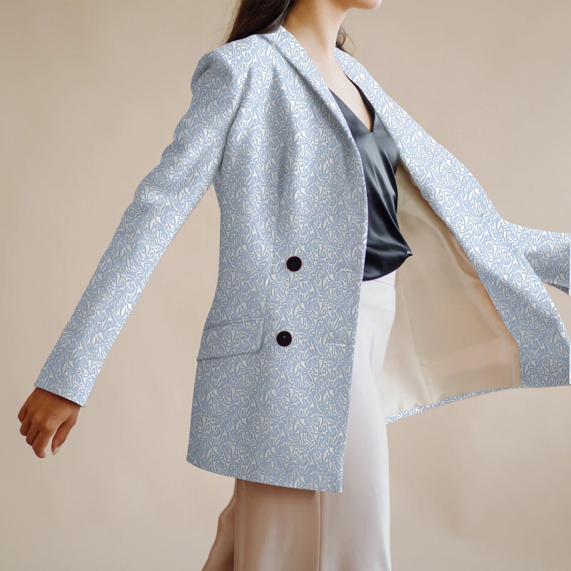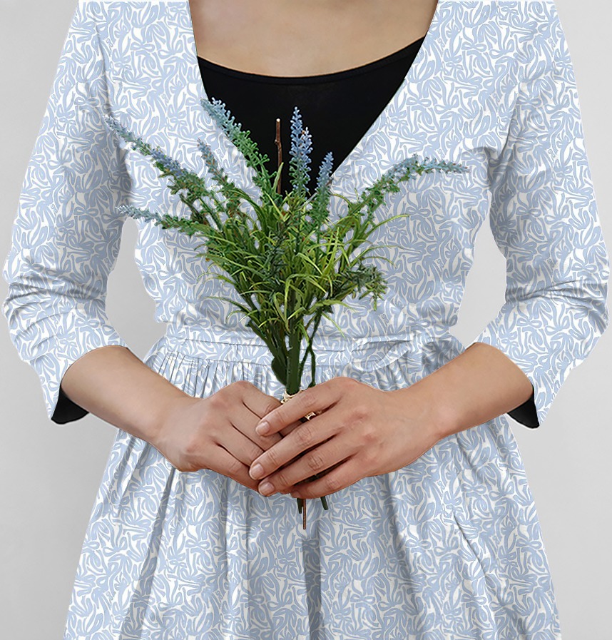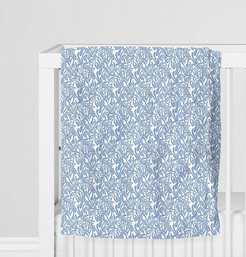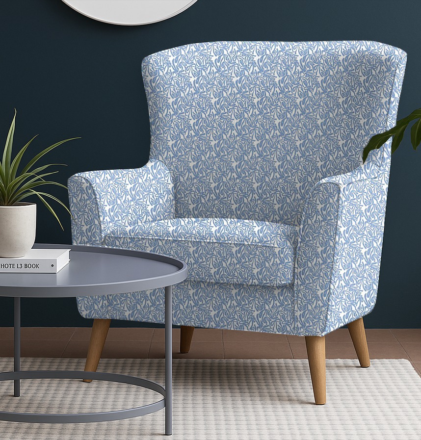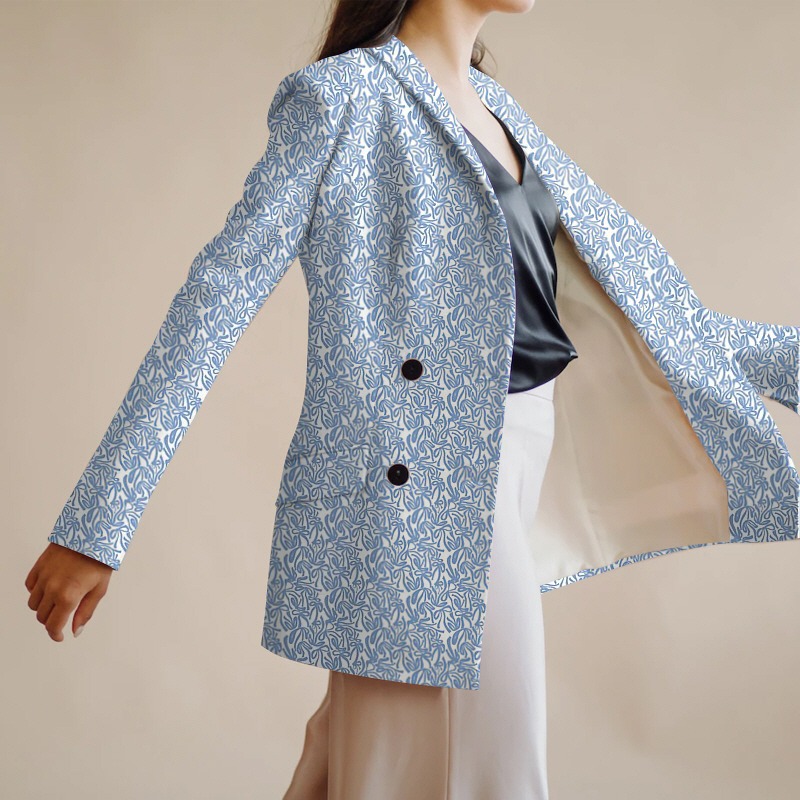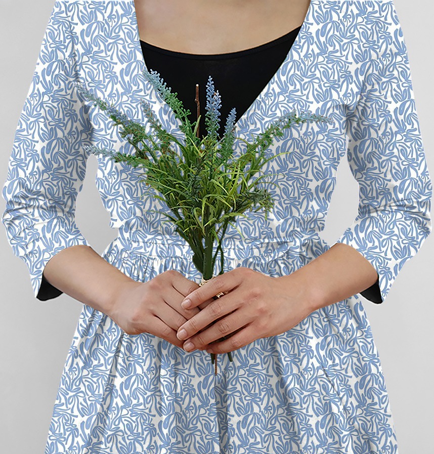 The clear blue color on the white background contrasts and creates a cheerful and sophisticated mood.