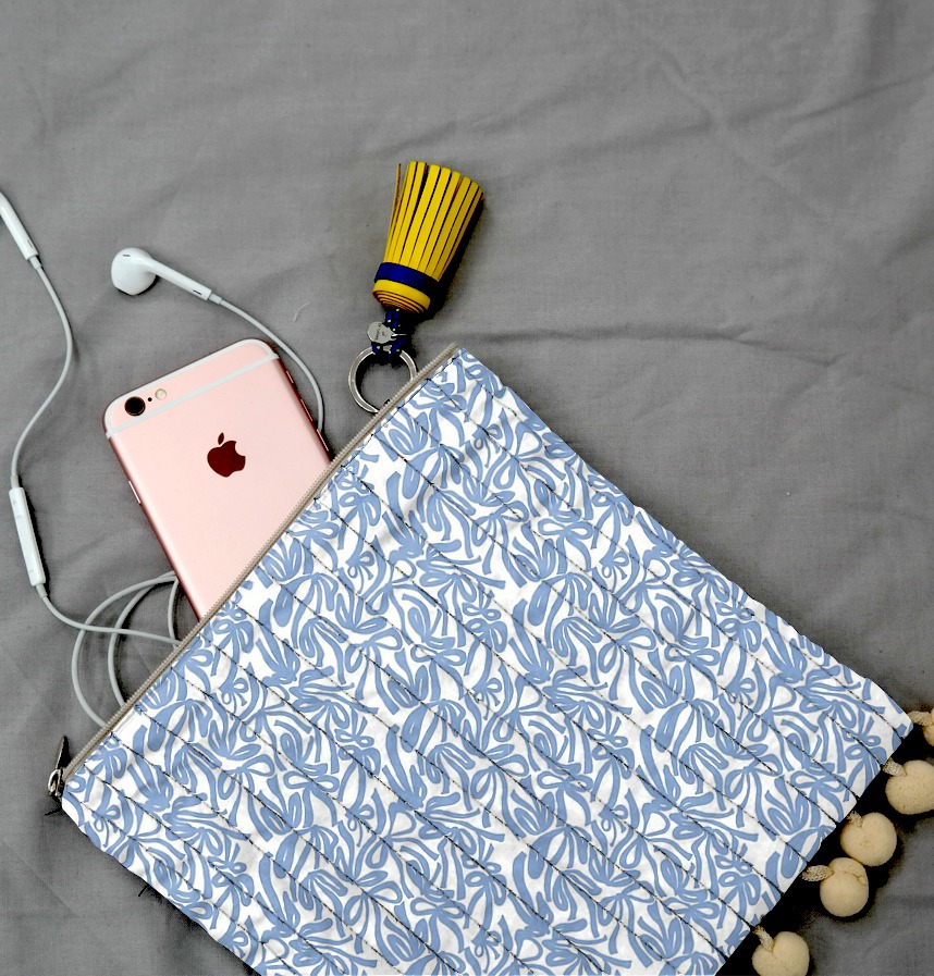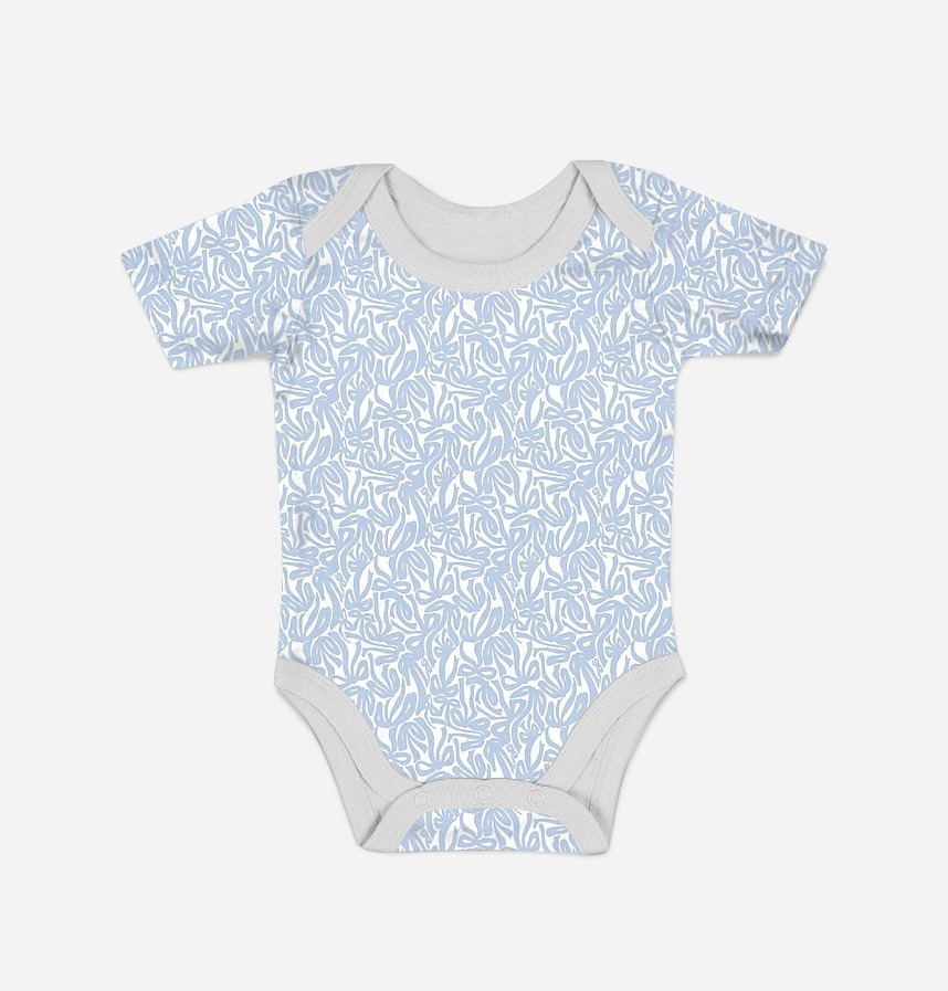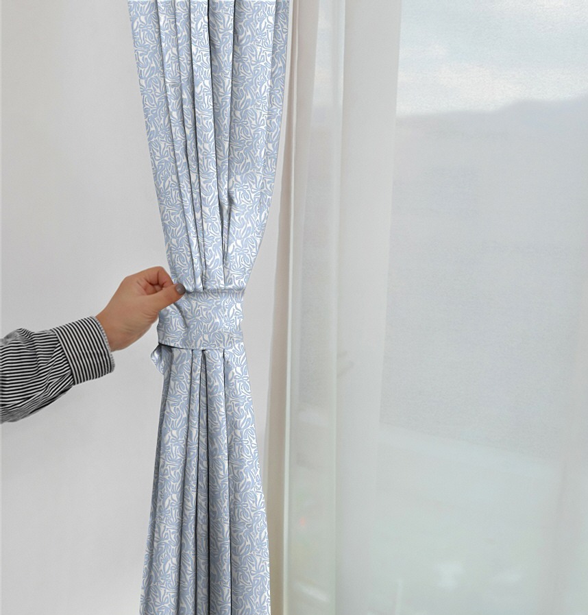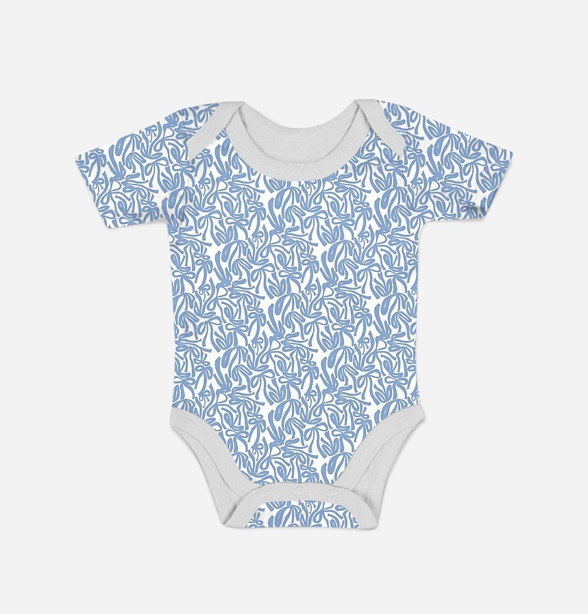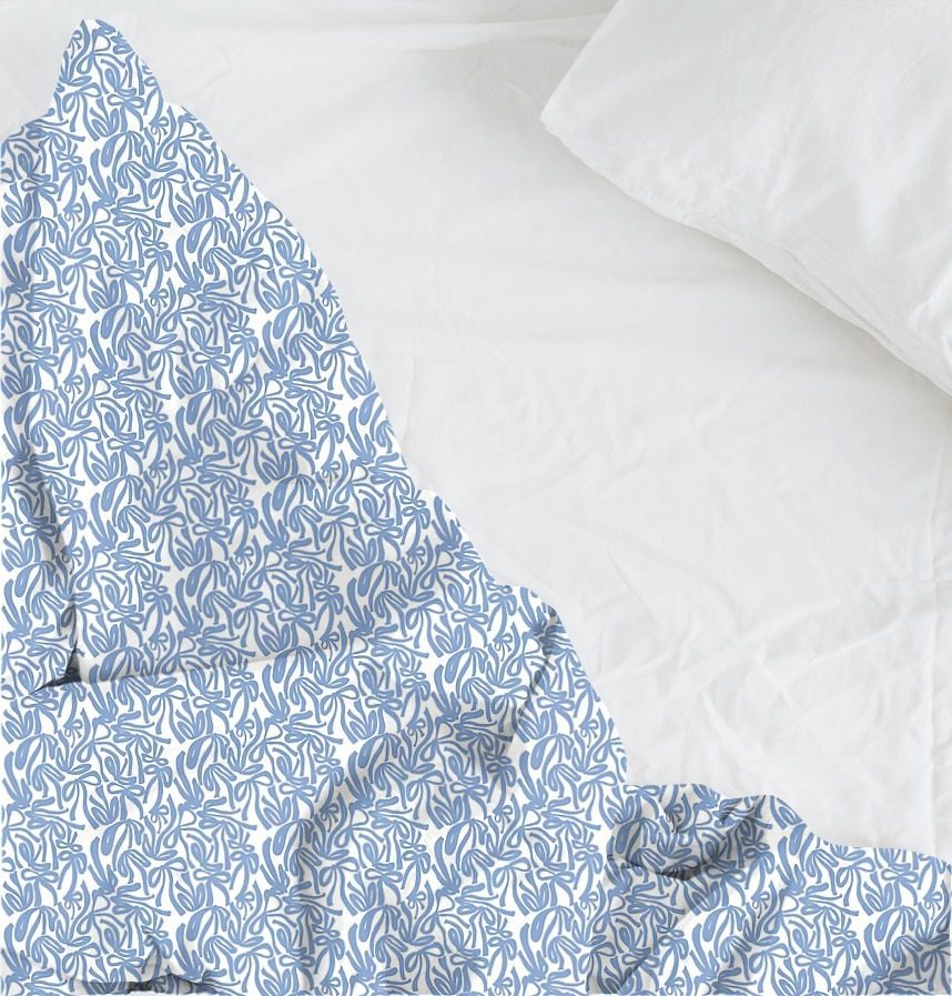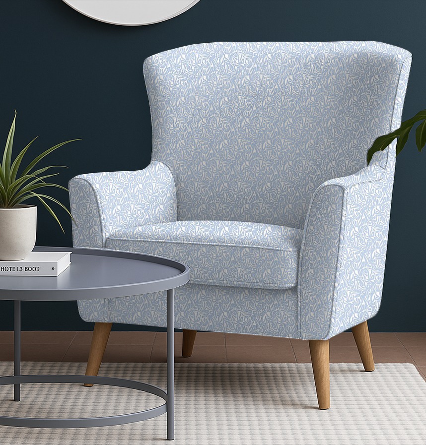 The clear blue color on the white background contrasts and creates a cheerful and sophisticated mood.