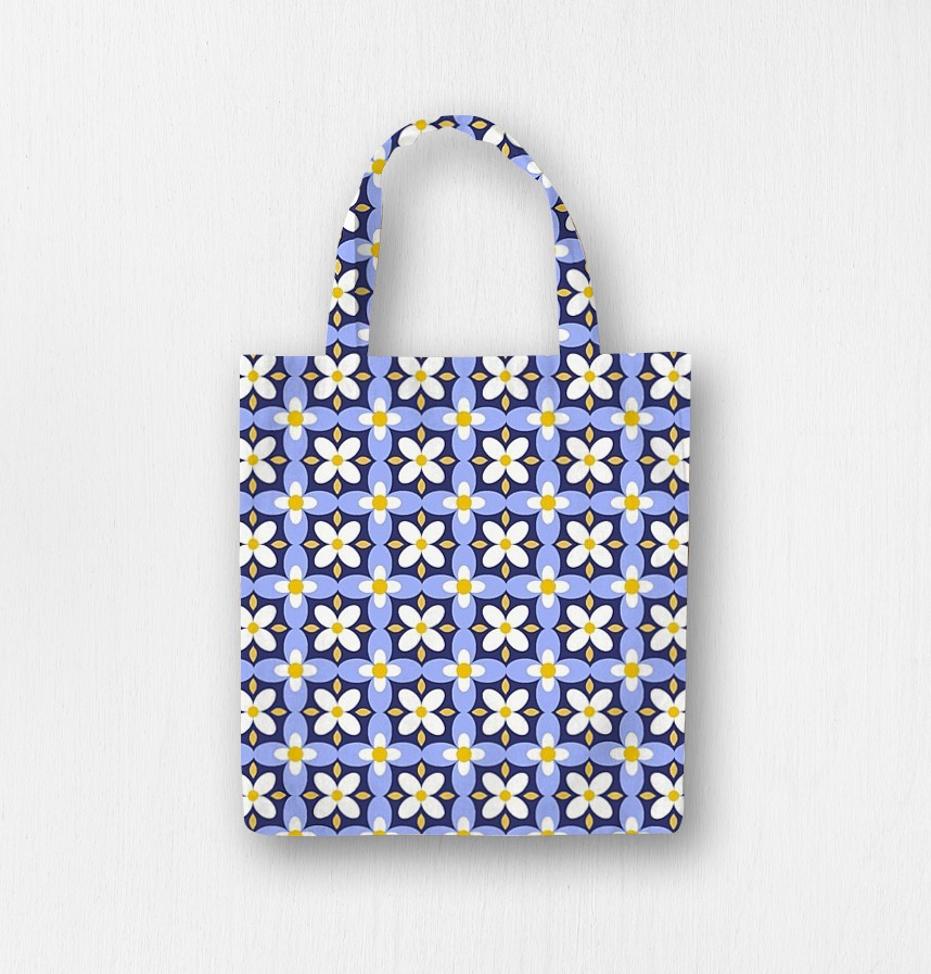 It is a retro-sentimental tile pattern with cheerful color combinations and repeated daisy flower motifs