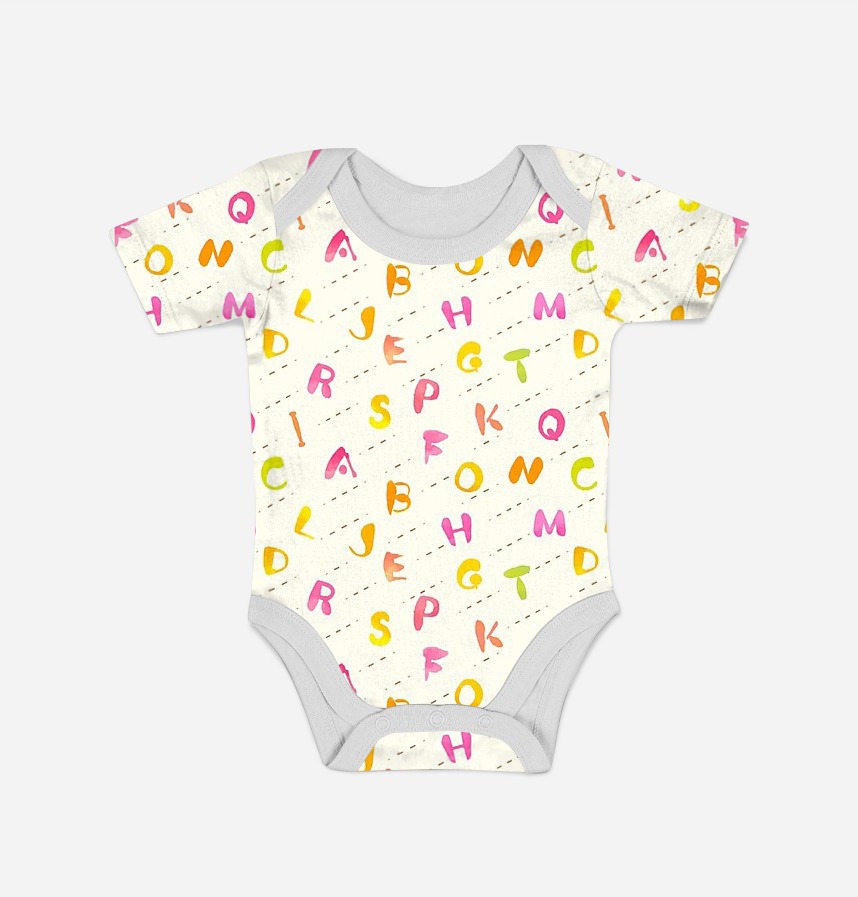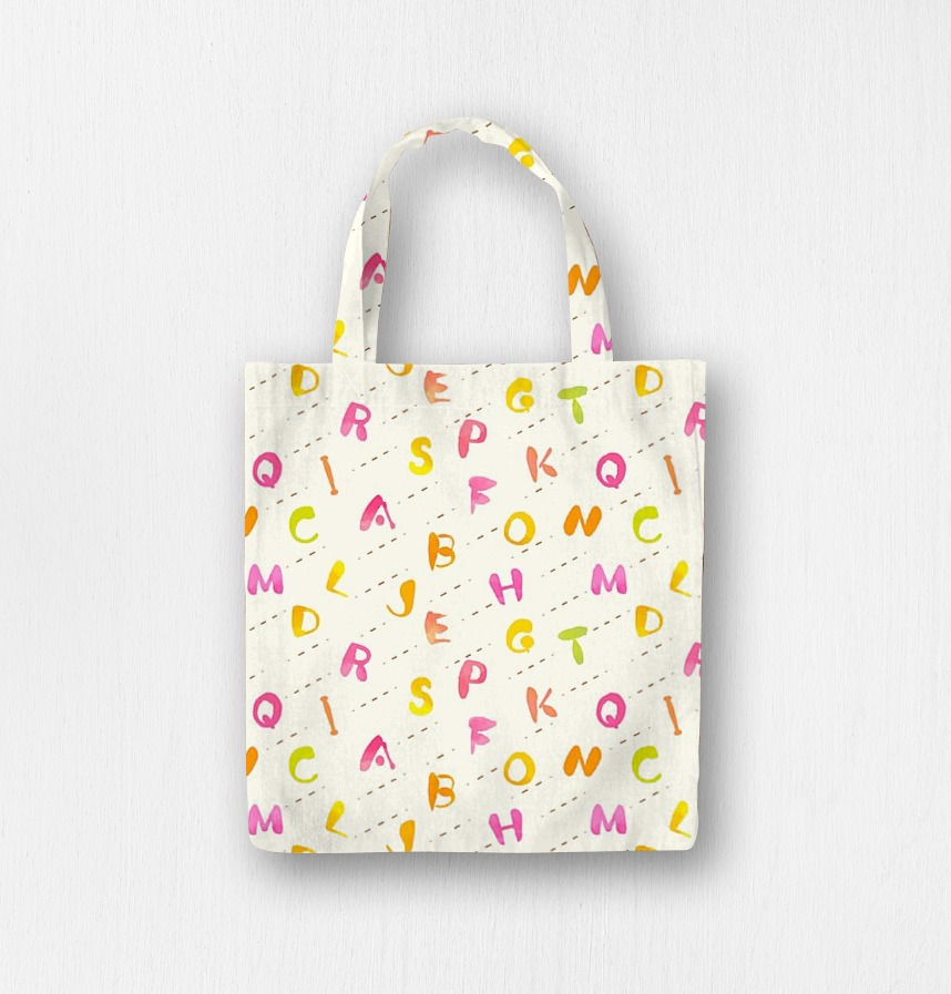 Randomly scattered alphabets create a rhythm, which is perfect for cloth, miscellaneous goods, and children's items.