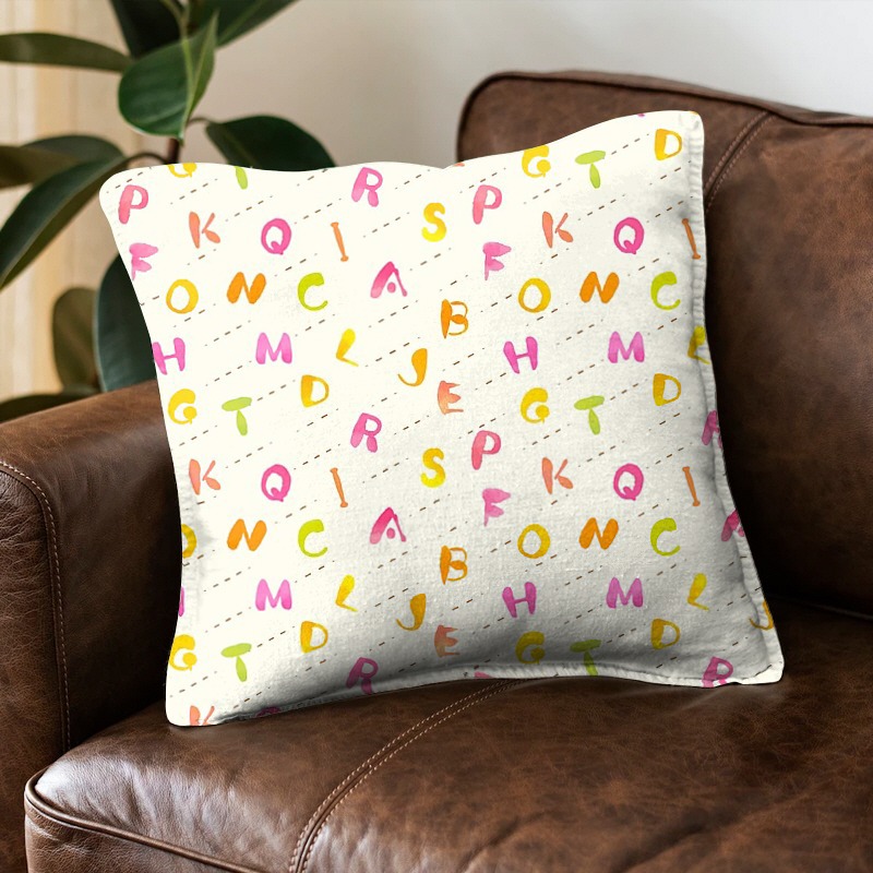 This is a seamless pattern of hand-drawn alphabets drawn with a soft watercolor touch.