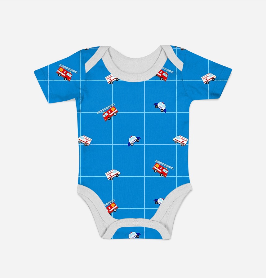 Design infomation It is a Rescue car check pattern design that combines a cute fire truck and a police car.