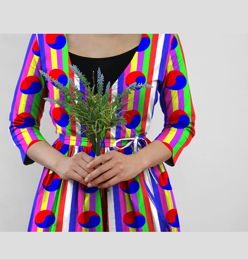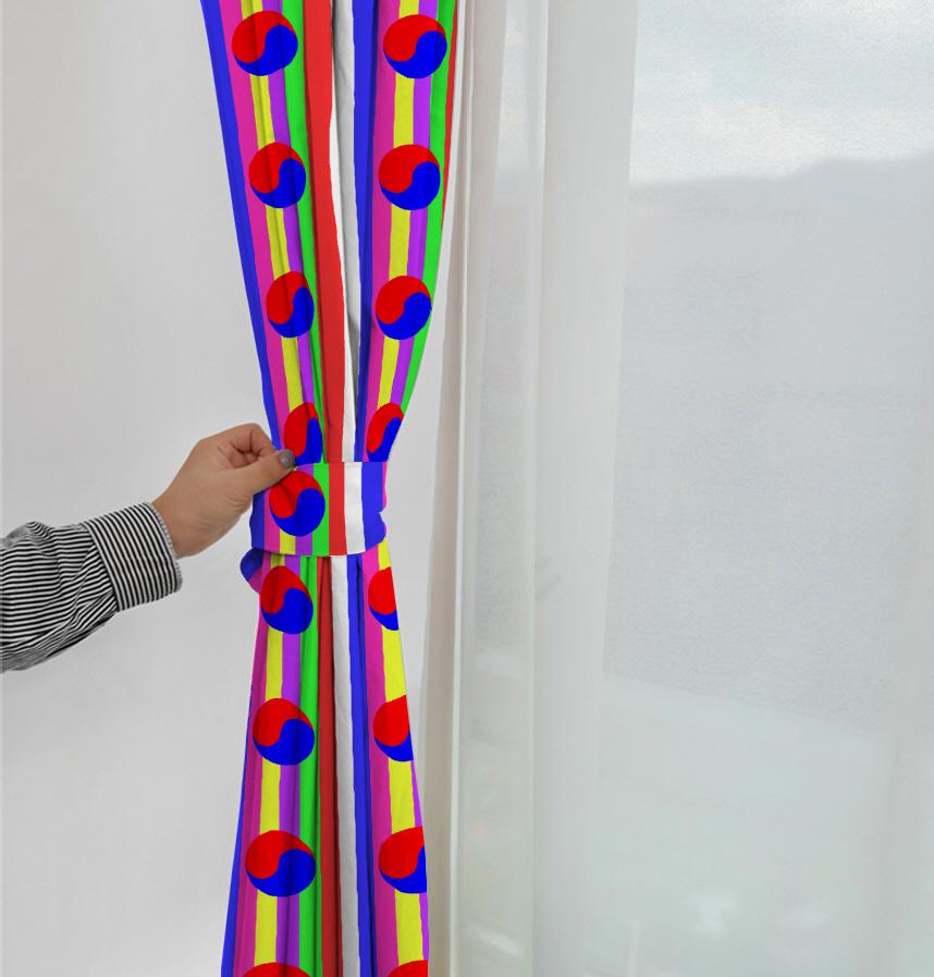 Taegeuk pattern on Korean traditional colored pattern background