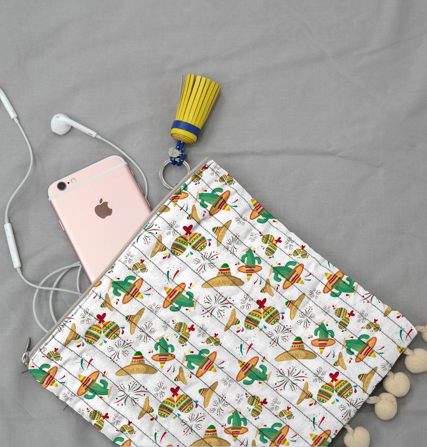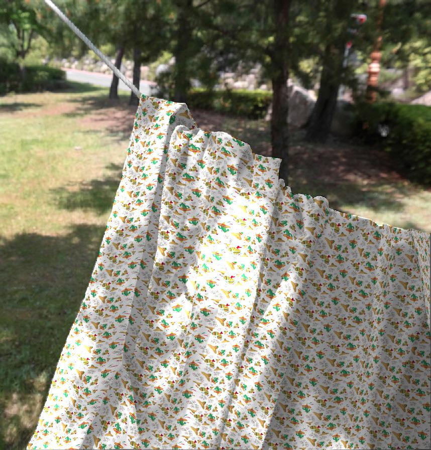 This pattern features traditional Mexican elements such as cacti, somabreros (hats), and colorful decorations. The design is reminiscent of festivals, events, and food associated with Mexican culture.