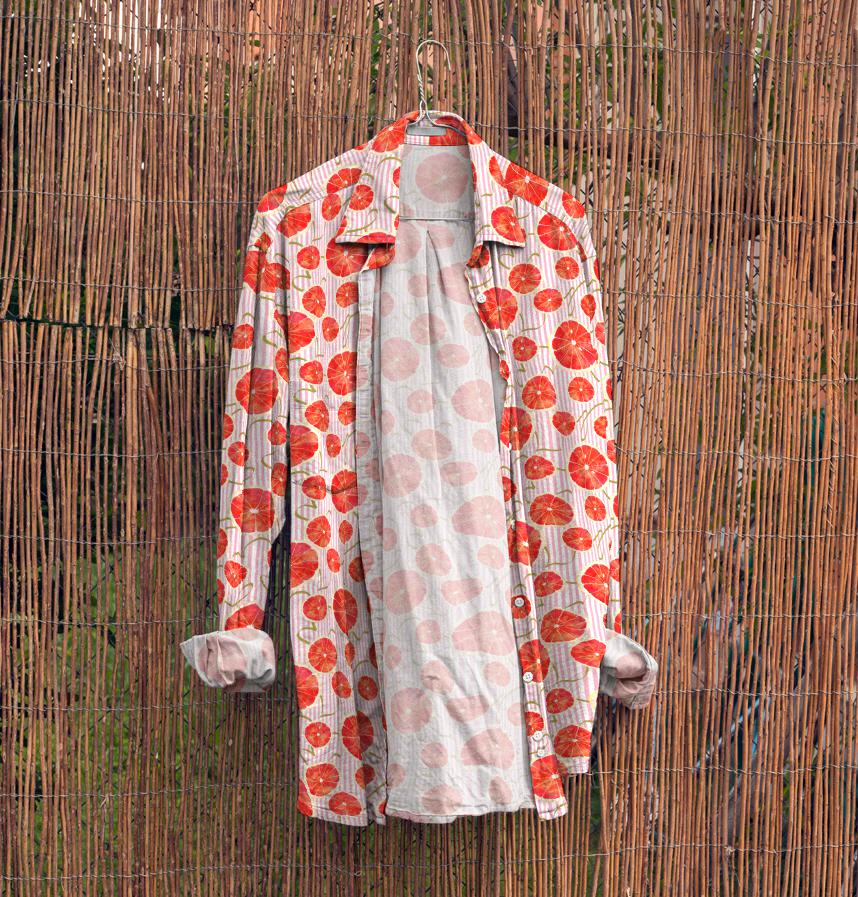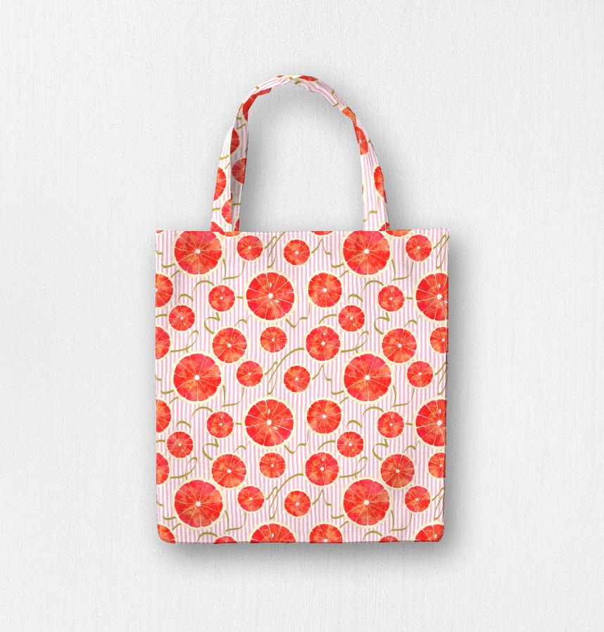 A design featuring sliced pink grapefruit and refreshing stripes.