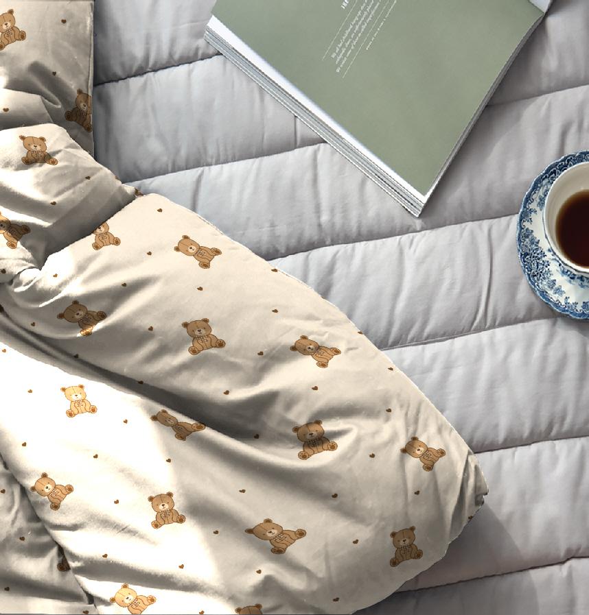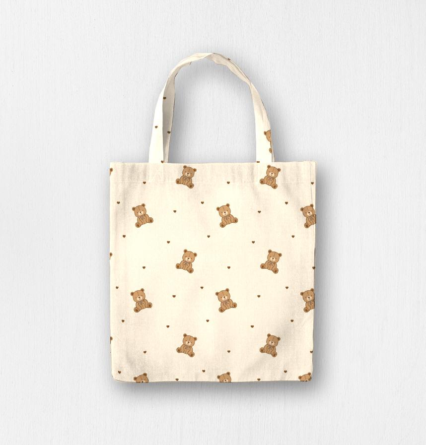 It is a lovely and cozy pattern design with a cute teddy bear and a small heart.