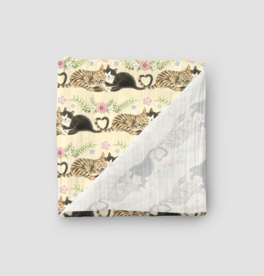 I drew two cats cuddling together and decorated them with flowers.