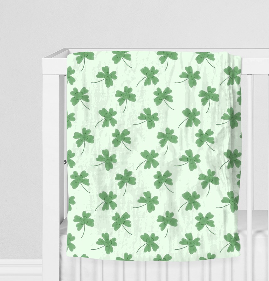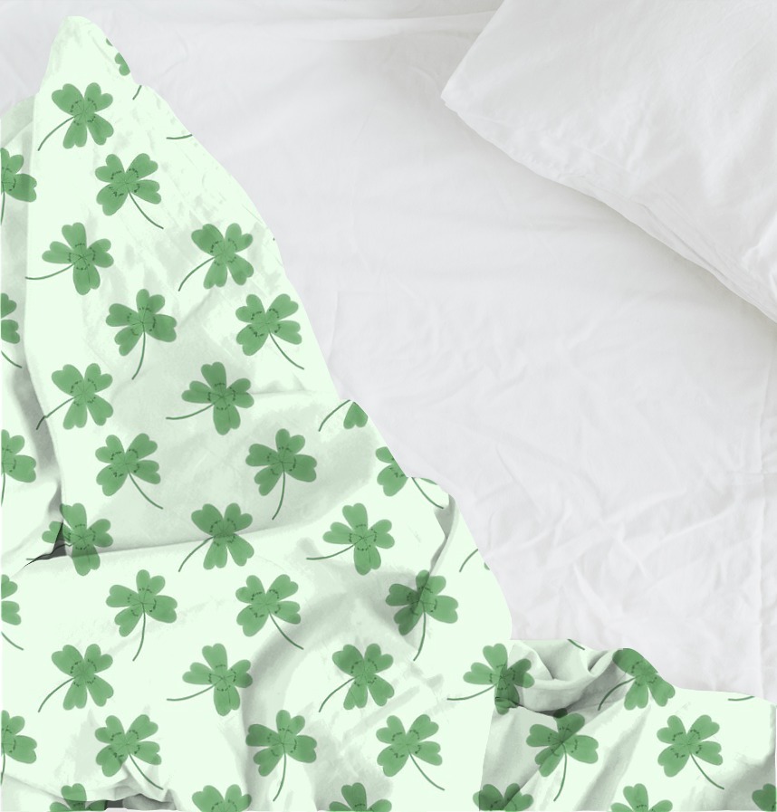A four-leaf clover with a gentle touch with themes of luck, kindness, and positive feelings.