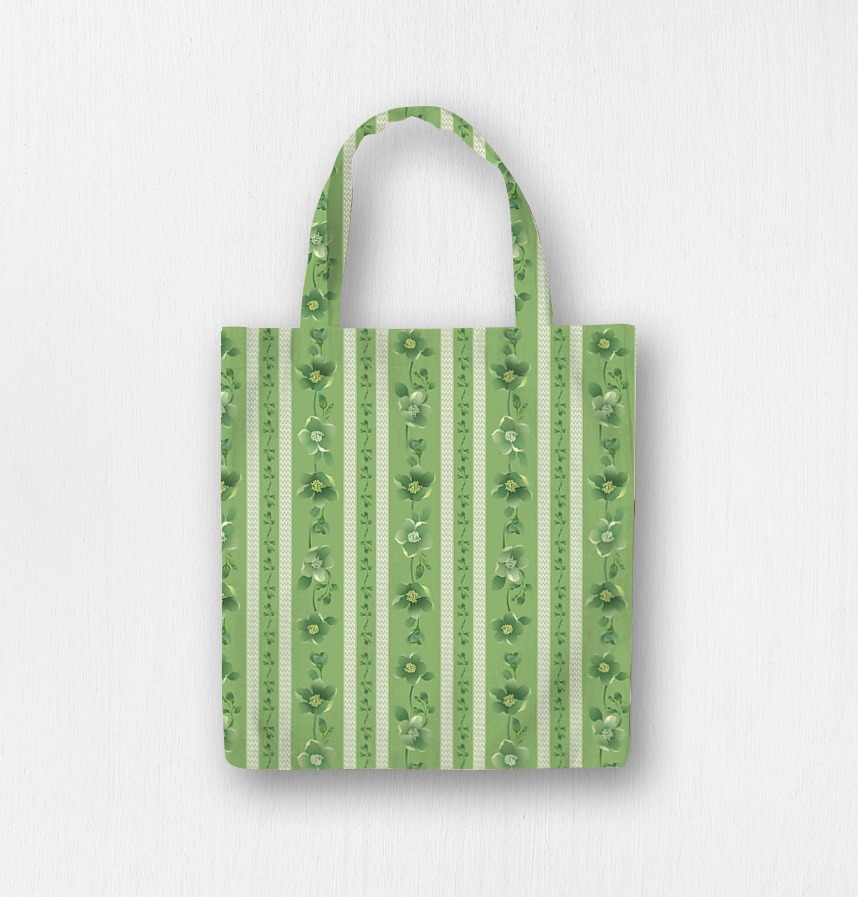 The stripe pattern is expressed with graded flower motifs, leaves, and stems.