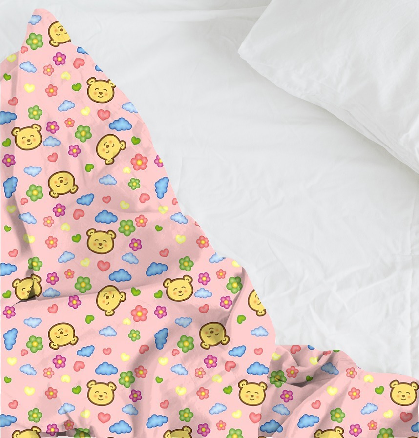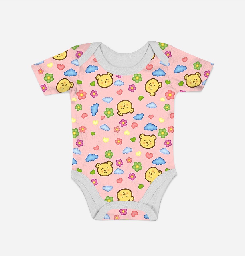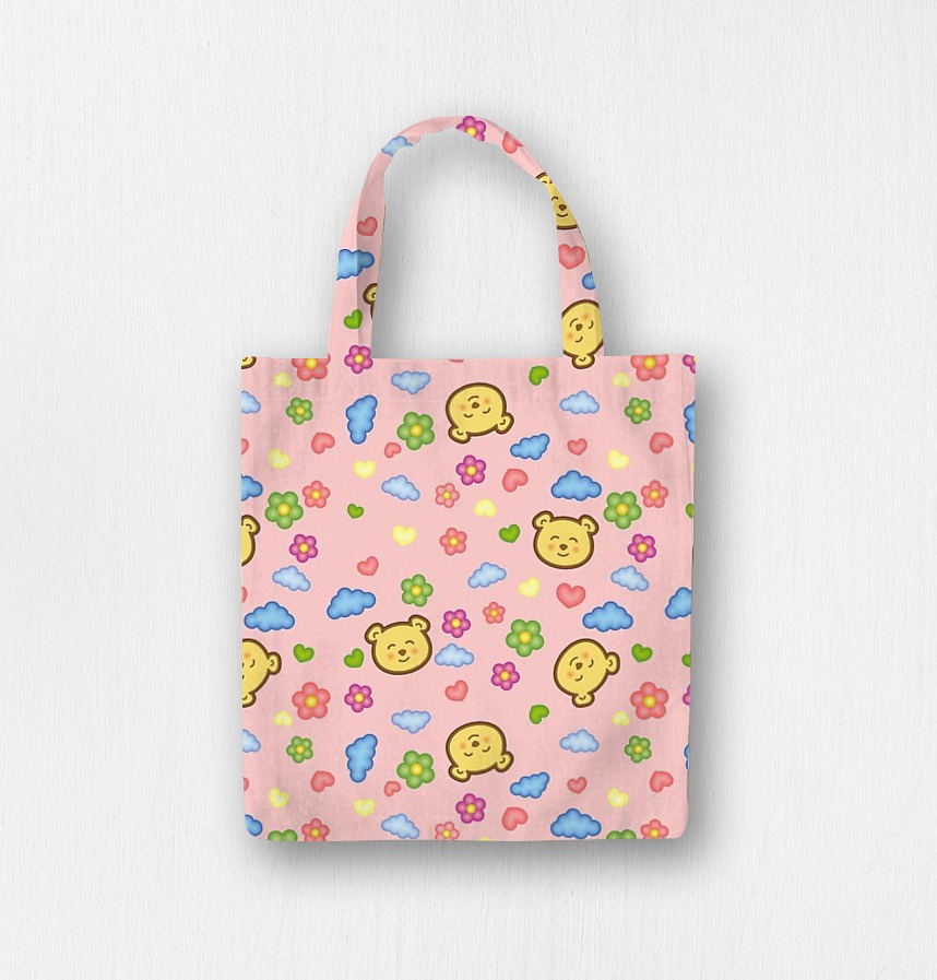 The motif is expressed with cute bear characters, flowers, and hearts. |